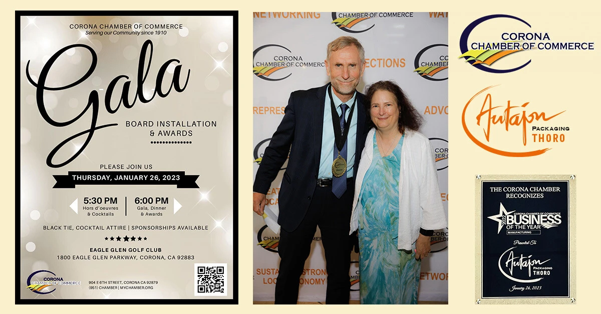 Autajon Packaging Thoro a été élue Entreprise de l’année 2022 et récompensée par le prix d’Excellence Industrielle décerné par la Chambre de Commerce de Corona (Californie, USA). Cette distinction témoigne de la reconnaissance locale et nationale du savoir-faire Autajon dans le domaine du packaging premium et durable.