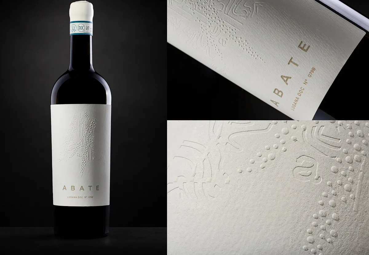 Deze zintuiglijke etiketten “Lugana Abate” bewijzen dat een design een verhaal kan vertellen, een product kan sublimeren en een erfgoed kan doorgeven.