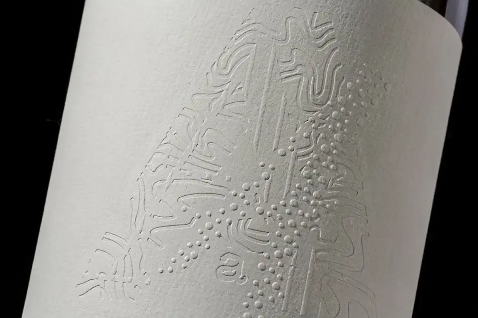 Autajon Labels Grafiche Seven toont een voorbeeldige beheersing van reliëfdruk en stempeling. Ook de innovatie rond het natuurlijke pigment bevestigt de technische expertise van de Groupe Autajon.